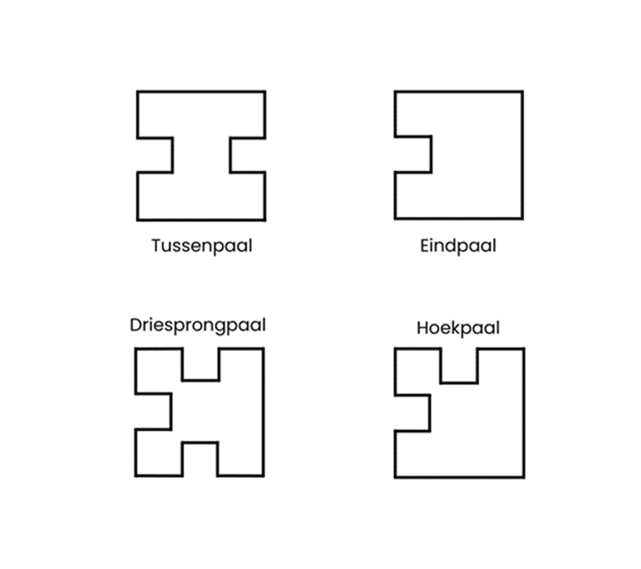 - Beschikbare types: Tussenpaal, hoekpaal, eindpaal en driesprongpaal, geschikt voor verschillende toepassingen en hoeken in uw tuinomheining.