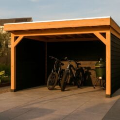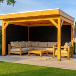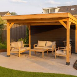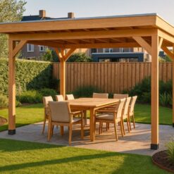 Wil je het hele jaar door genieten van het buitenleven? Dan is deze douglas overkapping van 400×300 cm een uitstekende keuze. Dankzij de extra dikke 15×15 cm staanders krijgt dit model een nog robuustere uitstraling en voelt de constructie bijzonder stabiel aan. Dit maakt de overkapping niet alleen praktisch, maar ook een luxe blikvanger in de tuin.